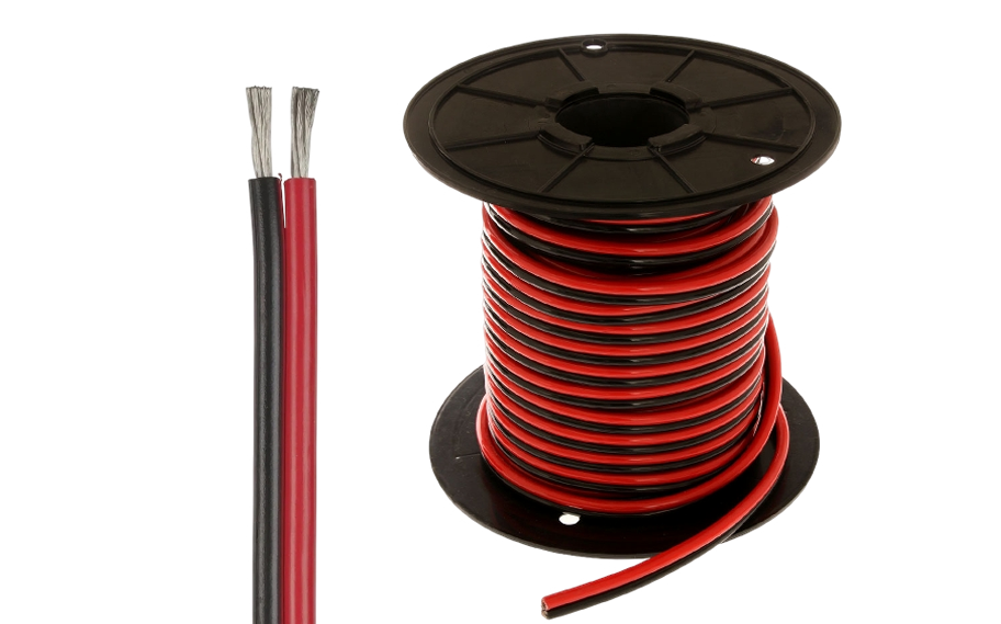 Heavy-duty solar cables (twin-core red & black) for connecting solar panels, inverters, and battery systems. Designed to handle high voltage and current loads, ensuring safe and efficient solar power distribution